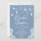 Cette belle invitation à la douche nuptiale LGBTQ bleu poussiéreux est chic et tendance mais rustique et vintage. Il est doté de lampes à cordes et de jarres en maçon avec dentelle blanche. Il est élégant et moderne et la police blanche apparaît simplement. Il est unique et facile à lire. Pour faire de cette magnifique invitation votre propre sélection Personnalisez ce modèle et tapez vos informations. En quelques secondes vous pouvez voir vos incroyables invitations wedding showers.