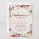 Cette invitation à la brunch aux fleurs d'été rustique est parfaite pour un simple wedding shower. Le design est composé de fleurs d'aquarelle bordeaux, roses et rousses avec des feuilles verts dans un arrière - plan verni brun.