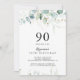 Invitation Rustique Eucalyptus Gold Floral 90e fête d'anniver