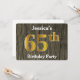 Invitation Rustique, Faux Gold 65e fête d'anniversaire; Nom p