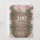 Rustic Floral Pink Peonies Surprise 100e anniversaire Invitation pour les femmes. Fleur florale aquarelle. Elégante Rose rose et Fleurs de pivoine. Anniversaire adulte. Arrière - plan rustique en bois. Country Vintage Retro. 13ème 15ème 16ème 18ème 20ème 21ème 30ème 40ème 50ème 60ème 70ème 80ème 90ème 100ème, tout âge. Pour plus de personnalisation, cliquez sur le bouton "Customiser" et utilisez notre outil de conception pour modifier ce modèle.