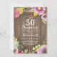Rustic Floral Surprise 50e Anniversaire Invitation pour Femmes. Aquarelle Floral, Rose, arrière - plan de bois rustique. Pour plus de personnalisation, cliquez sur le bouton "Customiser" et utilisez notre outil de conception pour modifier ce modèle.
