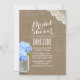 Rustic Mason Jar Blue Hydrangea Burlap Bridal Shower Invitations.