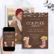 Doté d'un arrière - plan de bois chaleureux, cette invitation à la fête de fiançailles rustique occidentale moderne comprend des lampes à cordes, une paire de ses bottes avec son casquette cowboy, et une paire de ses bottes avec des tournesols - parfait pour un décontracté couple rustique de pays douche barbecue ! Le verso de l'invitation présente votre photo fiançailles préférée. Copyright Invitations élégants, tous droits réservés.