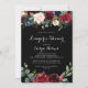 Cette invitation rustique à la lingerie de mariée noire est parfaite pour un wedding shower classique. Le design est composé de fleurs bordeaux, rouges, navy, bleues et rousses rayonnantes et gracieuses peintes à la main dans un arrière - plan noir, inspirant beauté naturelle.