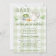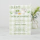 Invitation de Baby Shower sur le thème de la Tasse de Matcha Vert Cottagecore Rustique Moderne avec Carreaux Gingham Vert Clair - Une adorable invitation de baby shower sur le thème du matcha avec une tasse de thé matcha à l'aquarelle avec un accent de cœur et un pot de lait avec des feuilles de thé sur les côtés. Parfaite pour les futures mamans qui adorent le matcha, le thé vert ou tout ce qui concerne la santé et le bien-être. Personnalisez ce modèle d'invitation de baby shower modifiable avec vos propres détails d'événement. Disponible en téléchargement numérique instantané, envoyez-le par SMS ou sur les réseaux sociaux.