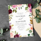 Elégante invitation à un mariage floral avec vos détails encadrés par des roses d'aquarelle et de verdure dans des tons de rougeur, de pêche, de violet, de bordeaux et de vert. L'invitation revient à un arrière - plan d'aquarelle bordeaux. Parfait pour le printemps, l'été et le mariage de automne !