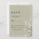 Mariage floral rustique rose et vert menthe RSVP invitations mêle des teintes romantiques douces et des éléments naturels de charme. Avec des fleurs délicates, une verdure verdoyante et des textures rustiques, elles donnent le ton parfait pour une fête dans le jardin ou à la campagne. Idéal pour les couples à la recherche d'une esthétique de mariage fantaisiste mais élégante. Imprimé sur un carton de haute qualité pour une touche intemporelle.