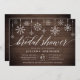 Nos invitations rustiques élégantes à la douche nuptiale pour les douches nuptiales d'hiver sont dotées d'un arrière - plan en planches de bois foncé avec une bordure supérieure de flocons de neige blancs glacés. La "douche nuptiale" apparaît sous la typographie de script de calligraphie chic. Personnalisez avec votre douche nuptiale d'hiver et les détails du registre en lettres blanches.