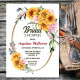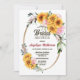 Invitation vos amis et proches à votre douche nuptiale avec cette invitation ovale rustique qui combine à merveille des tournesols brillants et audacieux et des roses roses délicates, capturant parfaitement l'esprit joyeux d'une fête de la douche nuptiale.