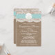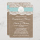 Cette plage de sable turquoise et rustique à un dollar fiançailles douche ou invitations de fête fera le faire-part parfait pour tout mariage au bord de la mer! Le design est composé d'un bel arrière - plan rustique effet burlap avec une coupe en dentelle vintage romantique finie avec un étonnant dollar de sable et un effet ruban turquoise. Ces invitations peuvent être personnalisées pour votre occasion spéciale et feraient la faire-part parfaite pour n'importe quel mariage de plage, douche nuptiale, fête de fiançailles, fête d'anniversaire et bien plus encore. Veuillez noter que Zazzle ne vend que des invitations imprimées, de sorte que ces invitations n'ont pas de matériel réel de burlap, dentelle, dollar de sable ou ruban.