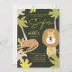 Appel à tous les jeunes explorateurs pour un Safari Africain. L'invitation présente un lion et un guépard assis parmi les palmiers et la végétation qui créent le cadre pour le texte parfait pour une célébration sauvage !