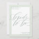 Célébrez la future mariée avec cette invitation à la douche nuptiale élégante et moderne, avec une calligraphie fluide et une disposition chic minimaliste. Parfait pour honorer une mariée spéciale avec un rassemblement élégant, ce design équilibre le raffinement avec une touche fraîche et contemporaine. Customisez avec les détails de votre événement pour une magnifique invitation personnelle qui donne le ton pour une célébration mémorable. Couleurs : vert sauge monotone avec des accents de script clair et aéré.