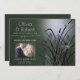 Rustic Nature Photo Fiançailles - Votre photo avec ce beau thème vert sauge, une douce lueur derrière un joli affichage de cattails et d'herbes avec des libellules scintillants brillant dans la lueur - le dos est une couleur de coordination facile à customiser modèle - oeuvre originale de WhimsicalArtwork™ pour la BarefootBride ™. Cela fait partie d'une suite complète de papeterie mariage, ainsi que Baby shower, Anniversaire et Invitations de Christening. Pour toute question ou assistance, veuillez contacter le concepteur indy.designer@yahoo.com.