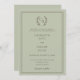 A soft sage green colored background decorated with a taupe, hand drawn wreath. White colored frames and text. Personalize and your monogram initials, names and details.