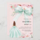Un élégant arrière - plan rose vif, décoré d'un grand arc vert sauge, de fleurs roses et d'une fille en robe verte. Personnalisez et ajoutez un nom et des détails du parti.