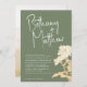 Simple sauge vert et blanc texte calligraphie script et crème chrysanthème invitation mariage. Parfait pour un simple mariage de automne. Éditez cette invitation avec vos propres noms, les détails du mariage et votre propre photo de couple au verso. D'autres éléments correspondants sont disponibles ou peuvent être créés sur demande. Conçu par www.mylittleedenweddings.com