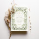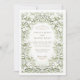 Célébrez votre mariage avec cette enchanteresse invitation iris blanc avec des motifs floraux complexes posés contre un arrière - plan vert sauge serein. Le design est mis en valeur par un cadre d'inspiration baroque imitation gaufrée, lui donnant un charme intemporel et sophistiqué. Parfait pour les mariages d'inspiration nature, formels ou romantiques, cette carte dégage élégance et charme. Veuillez noter que les éléments gaufrés sont imprimés et ne comprennent pas de véritables textures surélevées.