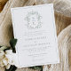 Formal Elegant Sage Green Baroque Crest Monogram Faire-part de mariage, avec un écrin de style baroque vintage et un monogramme moderne, est paré d'un cadre délicat. Cette faire-part de mariage victorienne a une formulation traditionnelle formelle avec les noms des parents qui hébergent le mariage, et la typographie élégante est accentuée par la calligraphie délicate.