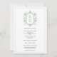 Élégant sauge vert vintage crête florale monogramme et faire-part de mariage de bordure. Invitation vos invités avec cette charmante faire-part de mariage au design floral vintage vert sage. Une crête magnifiquement conçue présente votre monogramme personnalisé avec vos noms en typographie verte complémentaire. Une fine bordure verte complète l'aspect élégant. Au verso, un code QR permet d'accéder rapidement aux détails RSVP et à d'autres informations mariages essentielles.