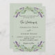 Un arrière - plan vert sage décoré de fleurs de lavande et de verdure d'eucalyptus. Personnalisez et vos noms et détails. Retour : ajoutez votre URL web à votre site web mariage pour RSVP et plus de détails.