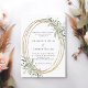Un arrière - plan blanc décoré de vert sage. Un cadre en faux or. Personnalisez et ajoutez vos noms et détails.
