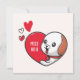 Un mignon chiot avec une expression qui fait chaud au coeur, entouré de coeurs rouges, avec la phrase "Miss You" écrite dans une belle police, et l'option de changer la phrase pour s'adapter à votre message.