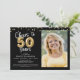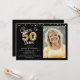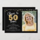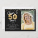Célébrez un 50e anniversaire avec ces invitations de fête élégantes et festives avec le titre CHEERS TO 50 YEARS avec des numéros de ballon d'or faux métallique et typographie de script moderne, une photo et confetti dans votre choix de couleur arrière - plan (montré en noir). ASSISTANCE : Pour obtenir de l'aide sur la modification ou la personnalisation de la conception, le transfert de la conception à un autre produit ou si vous souhaitez coordonner des éléments, contactez le concepteur AVANT de commander par Zazzle Conversation ou par courriel makeitaboutyoustore@gmail.com.