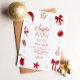 Santa Baby! A festive Christmas themed Baby Shower invitation featuring red and white christmas graphics - santa hat, presents, bow, stocking, candy cane, star, tree, baube, snow flake, misletoe.