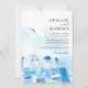Santorin Grèce aquarelle destination mariage invitation. Invitation vos proches pour célébrer votre mariage de destination au paradis avec ce magnifique faire-part de mariage d'aquarelle Santorin Grèce. L'invitation n'est pas une scène exacte, mais une scène pittoresque imaginaire de Santorin, Grèce, avec son paysage unique et ses bâtiments caractéristiques blanchis à la chaux qui descendent les falaises et vue panoramique sur l'océan. Le ciel bleu vif, parsemé de mouettes, crée une atmosphère méditerranéenne idyllique. Inspirée par la romance de la Grèce, les vues panoramiques sur l'océan et l'architecture caractéristique de l'île, cette invitation fournit non seulement des détails essentiels de l'événement, mais sert aussi de joli gardien.