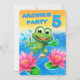 Saut de l'invitation personnalisable d'anniversaire d'amusement de grenouille. Une de mes illustrations préférées. Cette petite grenouille de saut aime des anniversaires et des parties tellement qu'il saute juste hors de l'image. Perfectionnez pour les articles de la partie de n'importe quel enfant, vous la trouvera sur des cartes, des invitations et des plats et divers habillement d'enfants. Tous avec des âges et des noms personnalisables pour la partie travaillée parfaite.