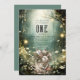 Wild un thème enchanté forêt bois forêt 1er anniversaire invitation pour les garçons ou les filles. Champignons géants magiques, animaux de la forêt, feuilles, invitation peinte. Des animaux de forêt à l'arrière. Personnaliser pour une fille ou un garçon. Disponible en version imprimée, en téléchargement numérique ou les deux.