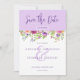 Élégante typographie moderne Sauvegarder la date violet foncé sur lavande. Bordure de fleurs colorées mélangées.