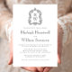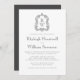 Cette élégante conception de faire-part de mariage d'inspiration vintage comprend une paire d'initiales monogrammes en police serif ouverte au-dessus et au-dessous d'une ligne de séparation et entourée d'une crête acanthus d'une ligne d'art acanthus sur un arrière - plan blanc. Le dos de la carte est gris charbon massif.