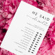 Profitez de votre douche nuptiale avec ce jeu "He Said She Said", avec un script de coeur délicat, 10 questions personnalisées et dos personnalisé. Ajoutez facilement vos propres détails en cliquant sur l'option "personnaliser".