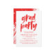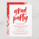 Invités Invitations pour célébrer la grade avec nos invitations modernes de la fête de graduation! Les invitations branchées à la fête de remise de diplômes comportent une "grande fête" dans une police de pinceau peinte en rouge. Personnalisez les invitations créatifs de la fête de remise de diplômes en ajoutant le nom du diplômé, le nom de l'école, l'année de remise de diplômes et les détails de la fête de remise de diplômes. Les invitations s'inversent pour afficher un dessin de brosse rouge et blanc.