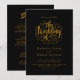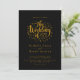 Cette élégante faire-part de mariage en noir et or est parfaite pour un mariage moderne. Le design simple présente une élégante calligraphie dorée sur un arrière - plan noir. La carte d'invitation comprend les détails du mariage au dos au lieu de payer une carte d'enceinte séparée.