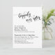 Cette carte simple et élégante a été conçue pour inviter vos amis et votre famille à votre réception de mariage ou à votre soirée tenue quelque temps après la cérémonie de mariage elle-même. Le fond est un fond blanc uni qui peut être changé en n'importe quelle couleur que vous aimez. En utilisant une police de caractères cursive moderne et tourbillonnante, j'ai créé un graphique de typographie en surimpression qui indique "happily ever after" avec des volutes et des courbes extravagantes. La même police a été utilisée pour créer le mot "love", qui a été placé, assez grand, au dos. Cette police de caractères a été associée à une police sans-serif complémentaire pour afficher vos coordonnées. Utilisez les champs de modèle fournis pour personnaliser le design. Si vous souhaitez personnaliser davantage, déplacer des détails ailleurs, modifier les polices ou les tailles, cliquez simplement sur le lien fourni et modifiez le design comme vous le souhaitez. J'ai ajouté toutes les couches séparément et elles sont déverrouillées pour vous donner un contrôle total sur le design. //