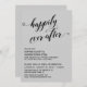 Voici un choix amusant et simple pour vos besoins de célébration après le mariage. Sur un fond uni modifiable, j'ai placé un graphique typographique qui indique "happily ever after" avec une police script élaborée ornée de cœurs. En dessous, vos informations apparaissent dans une police simple en majuscules. Utilisez les champs du modèle pour ajouter vos propres informations et cliquez pour personnaliser davantage si vous souhaitez apporter d'autres modifications. Toutes les couches sont déverrouillées pour vous permettre de contrôler entièrement le positionnement et la taille.