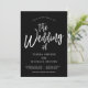 Un faire-part de mariage unique avec style de script blanc dansant lettrage contre noir suivi de vos détails uniques de jour de mariage. L'envers contient un noir de charbon de bois solide qui complète l'avant de l'invitation. Visitez la collection pour les articles correspondants, y compris la carte RSVP gratuite et plus.