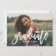 Célébrez dans le style avec une invitation de fête de fin d'études moderne présentant une photo à fond perdu et un script « diplômé » surdimensionné sur le devant. Une typographie propre et minimaliste met en valeur le nom du diplômé et l'année de promotion sans détourner du portrait. Le verso présente des détails d'événement nets dans une tonalité or élégante. Personnalisez tout le texte et la photo.