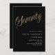 Une invitation moderne et élégante pour une fête du 70e anniversaire pour lui et elle. Arrière - plan noir et le mot Soixante écrit avec de grandes lettres faux or. Personnalisez et ajoutez un nom et des détails du parti.