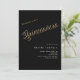 Une invitation minimaliste moderne Quinceañera. Arrière - plan noir classique et le mot Quinceanera écrit avec de grandes lettres en faux or. Personnalisez et ajoutez un nom et des détails du parti.