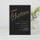 Une invitation Sweet 16 moderne. Arrière - plan noir classique et le mot Seize écrit avec de grandes lettres en faux or. Personnalisez et ajoutez un nom et des détails du parti. Texte blanc.