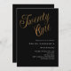 Une invitation design et moderne pour une fête de 21e anniversaire. Arrière - plan noir classique et le mot Vingt et un écrit avec d'élégantes grandes lettres de script en faux or. Personnalisez et ajoutez un nom et des détails du parti.