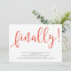 Une invitation amusante à la fête de fiançailles avec le mot "enfin !" en gras police lettrée et détails de la fête dans la police sans serif moderne. Le texte (y compris le mot "enfin") et les couleurs arrière - plans peuvent être modifiés en cliquant sur "customiser plus loin"