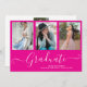 White Script Graduate 4 Photo Collage Hot Rose Graduation Invitation. Pour plus de personnalisation, cliquez sur le bouton "Customiser" et utilisez notre outil de conception pour modifier ce modèle.