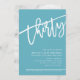 Invitation SCRIPT MODERNE 30e anniversaire fête turquoise bla