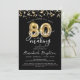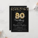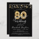 Invitation moderne et festive de 80ème anniversaire avec le titre Vous êtes invité à une fête 80 ANS DANS LA fabrication en calligraphie typographie script et faux numéros de ballon d'or métallique et des serpentins d'or et confettis et lumières blanches dans votre choix de couleur arrière - plan (montré en noir). ASSISTANCE : Pour obtenir de l'aide sur la modification ou la personnalisation de la conception, le changement de couleur, le transfert de la conception vers un autre produit ou si vous souhaitez coordonner des éléments, contactez le concepteur AVANT de commander par Zazzle Conversation ou par courriel makeitaboutyoustore@gmail.com.
