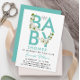 Invitation Script moderne Baby shower turquoise Floral